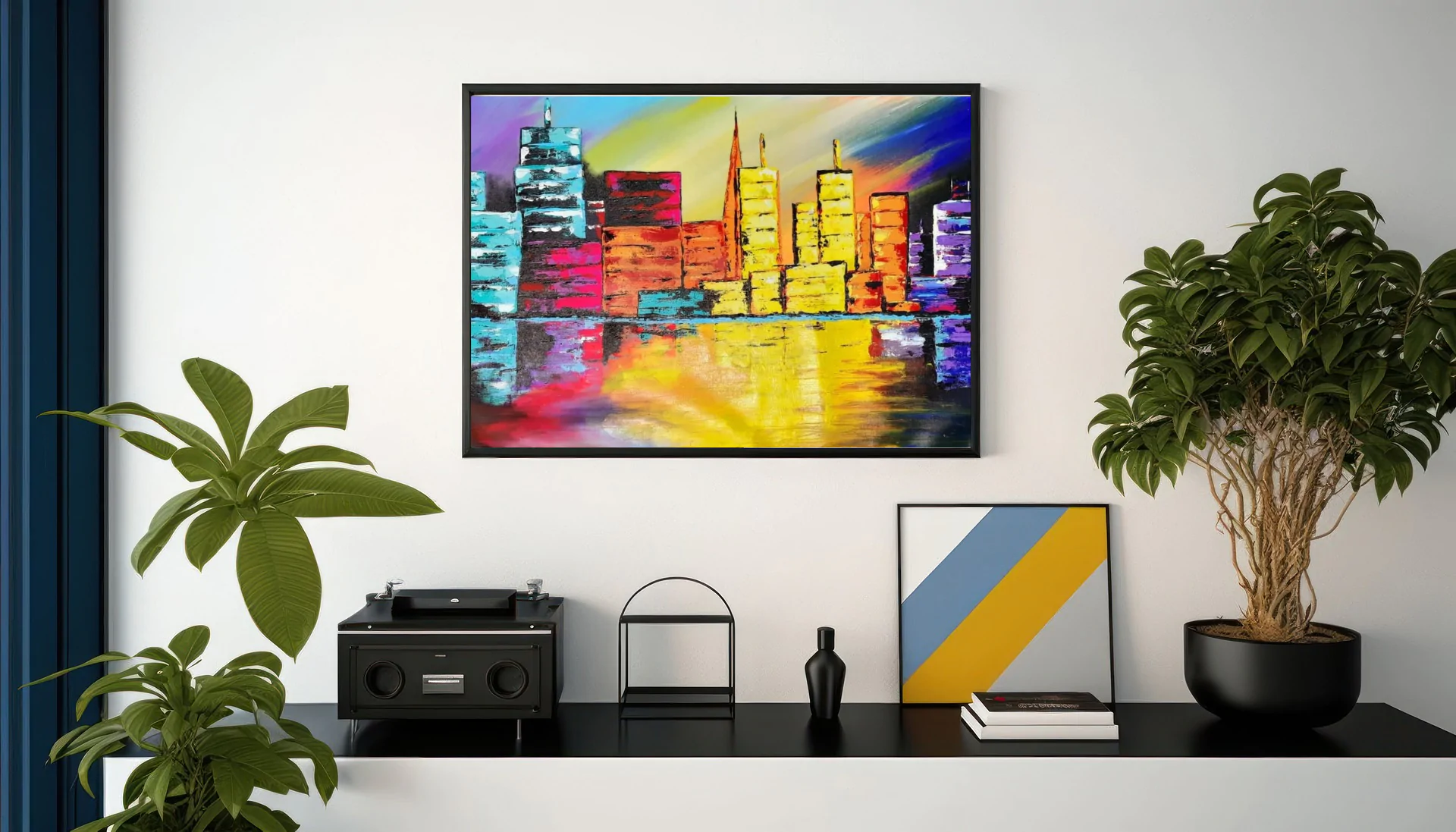 Our artists have skillfully translated the city’s dynamic atmosphere into these abstract masterpieces, using a fusion of color, movement, and emotion. Each painting tells a story, not through precise representation, but through the evocative power of abstract art. It’s a journey into the soul of the city, where the pulse of metropolis and the creativity of the artist converge on canvas.